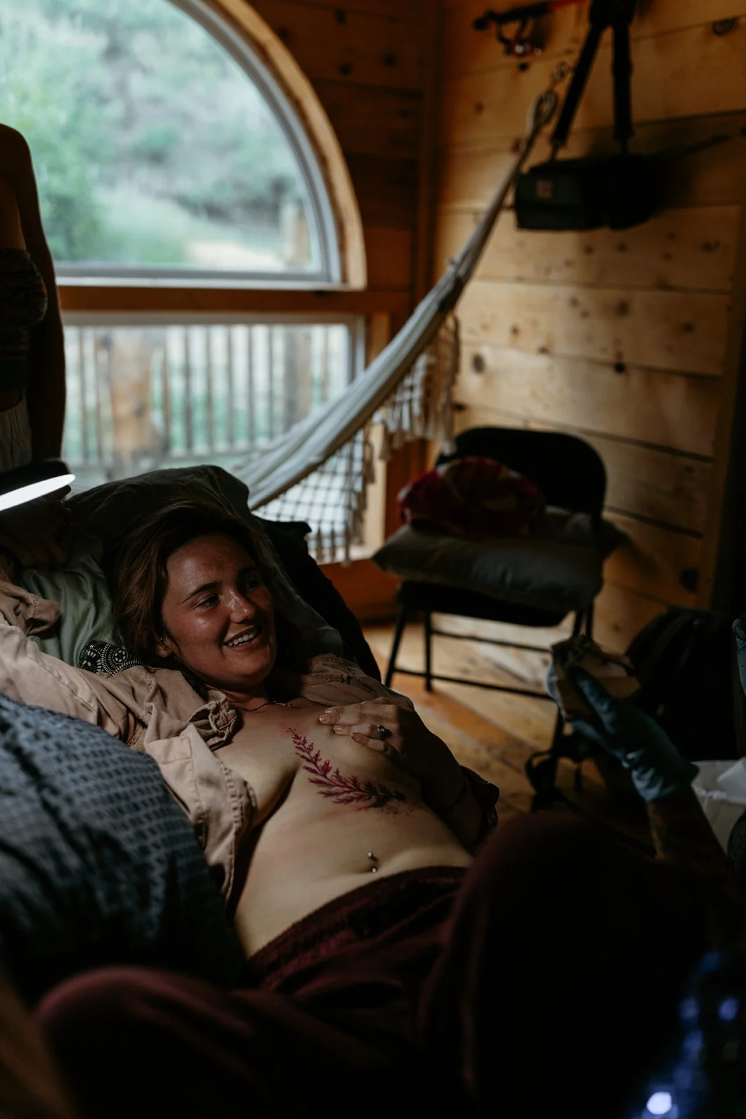“I loved getting tattooed in a comfortable environment surrounded by nature. I watched the summer storm roll into the mountains and the trees swaying with the wind. The environment and people surrounding me made it much easier to focus on the intention of my tattoo, which was "inner peace". In most tattoo settings it feels transactional and more like a business agreement. Tattoo therapy is an entirely different situation. There was love and acceptance surrounding me at all times.”
